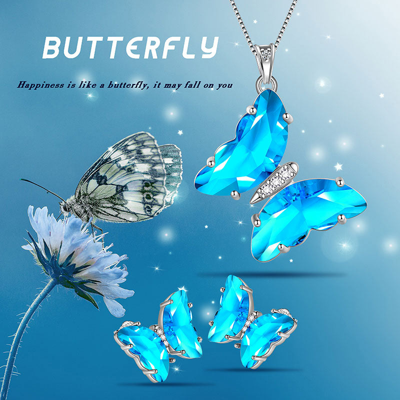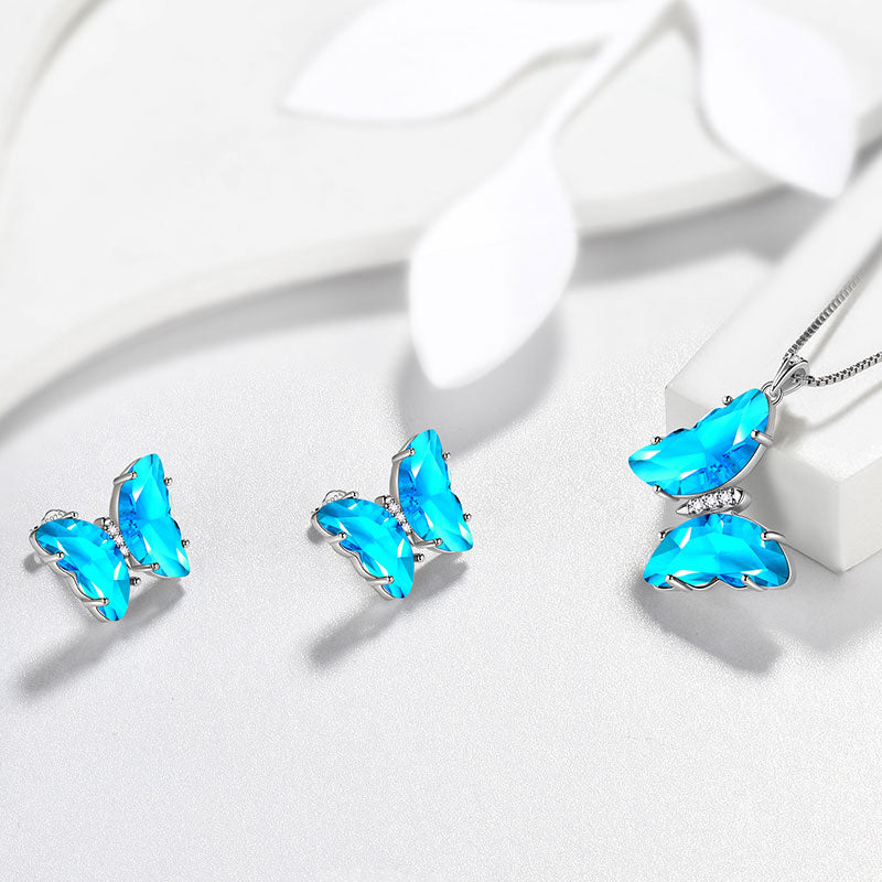 Aurora Tears Frauen Mädchen Schmetterling März Geburtsstein Schmuck Sets