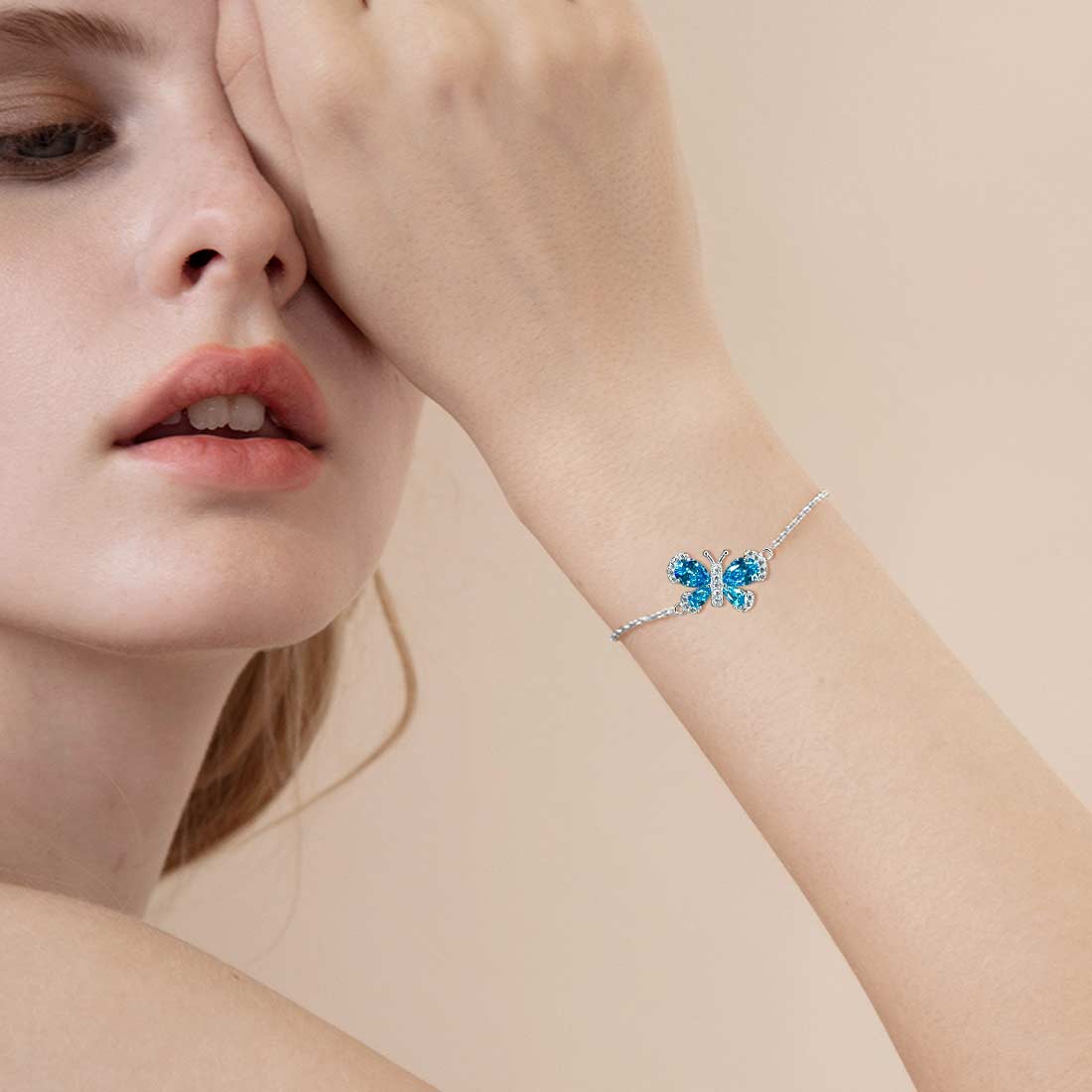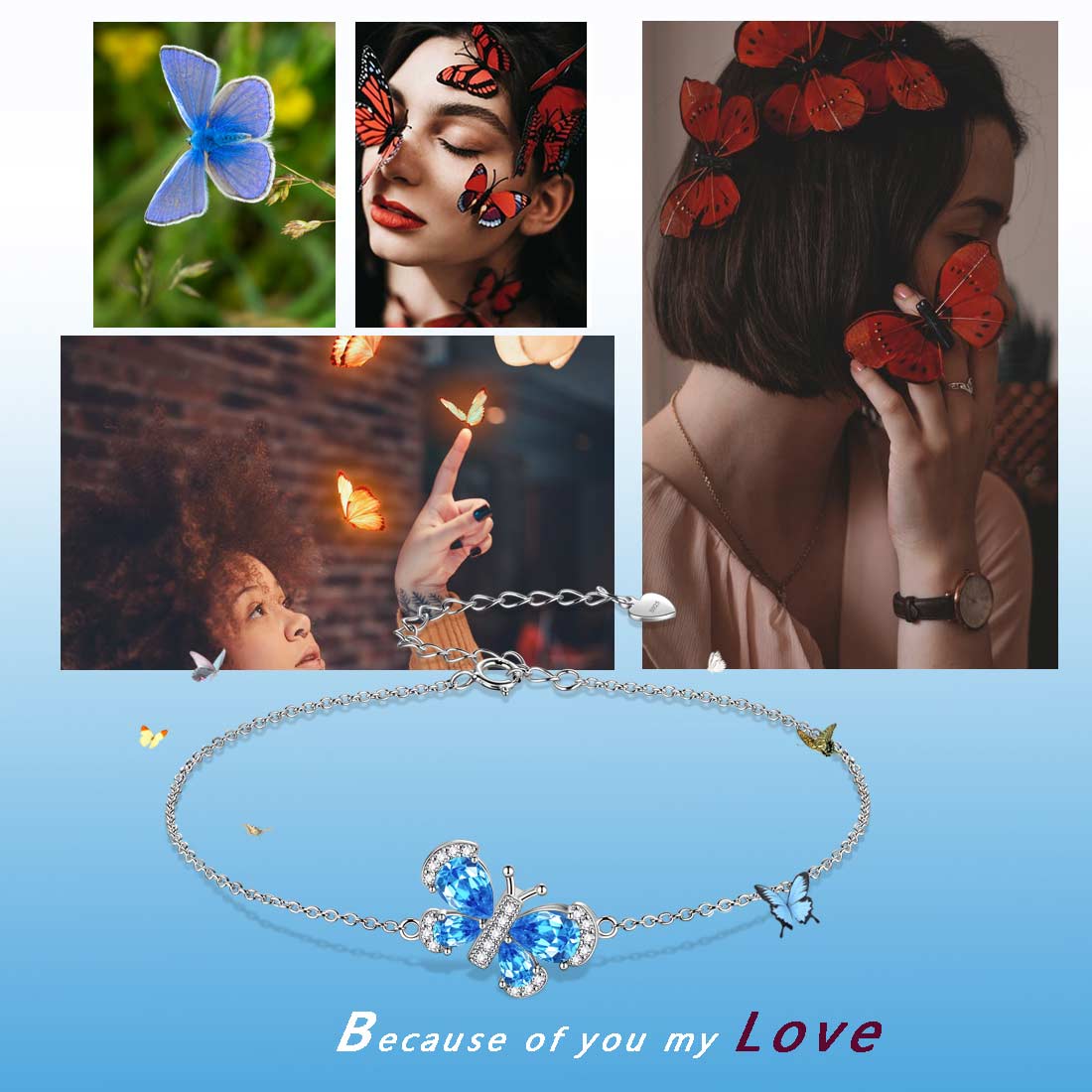 Aurora Tears Schmetterling März Geburtsstein Armband für Damen Mädchen