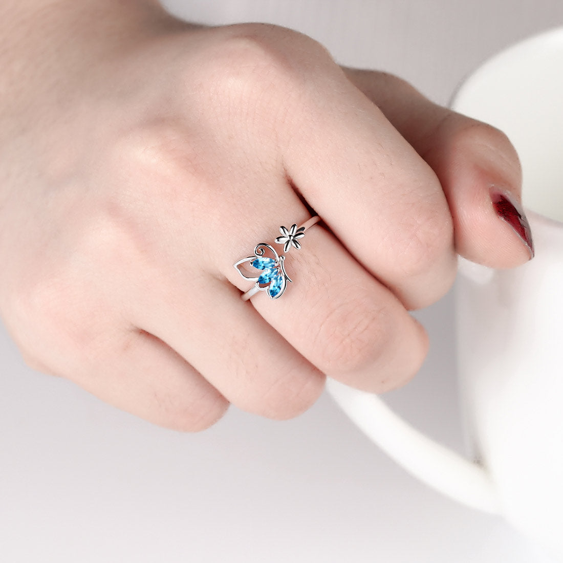 Aurora Tears Schmetterling März Geburtsstein Ringe für Frauen Mädchen
