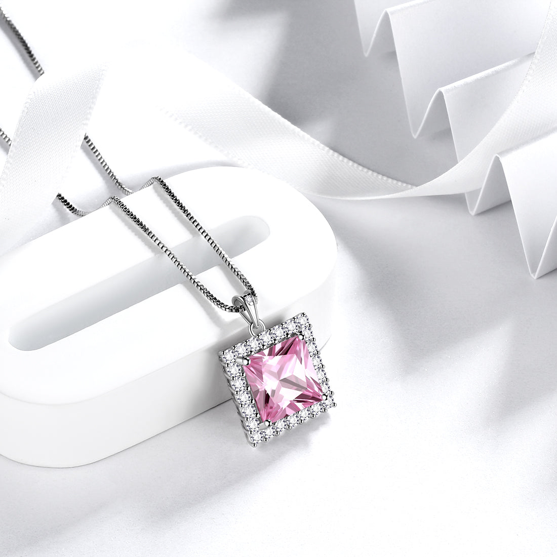 Einzigartiges Design: Ein Schmuck anhänger mit einem quadratischen Edelstein, der von funkelnden Diamanten umgeben ist und Ihren eleganten und bezaubernden Charme zeigt.