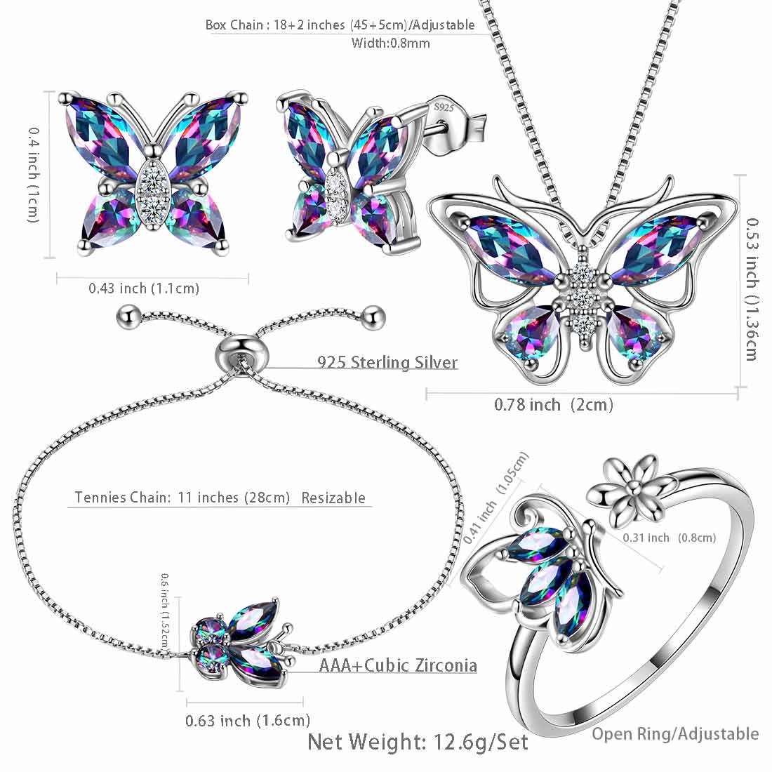 Damen-Schmucksets mit Schmetterlingen – Halskette + Ohrringe + Ring + Armband