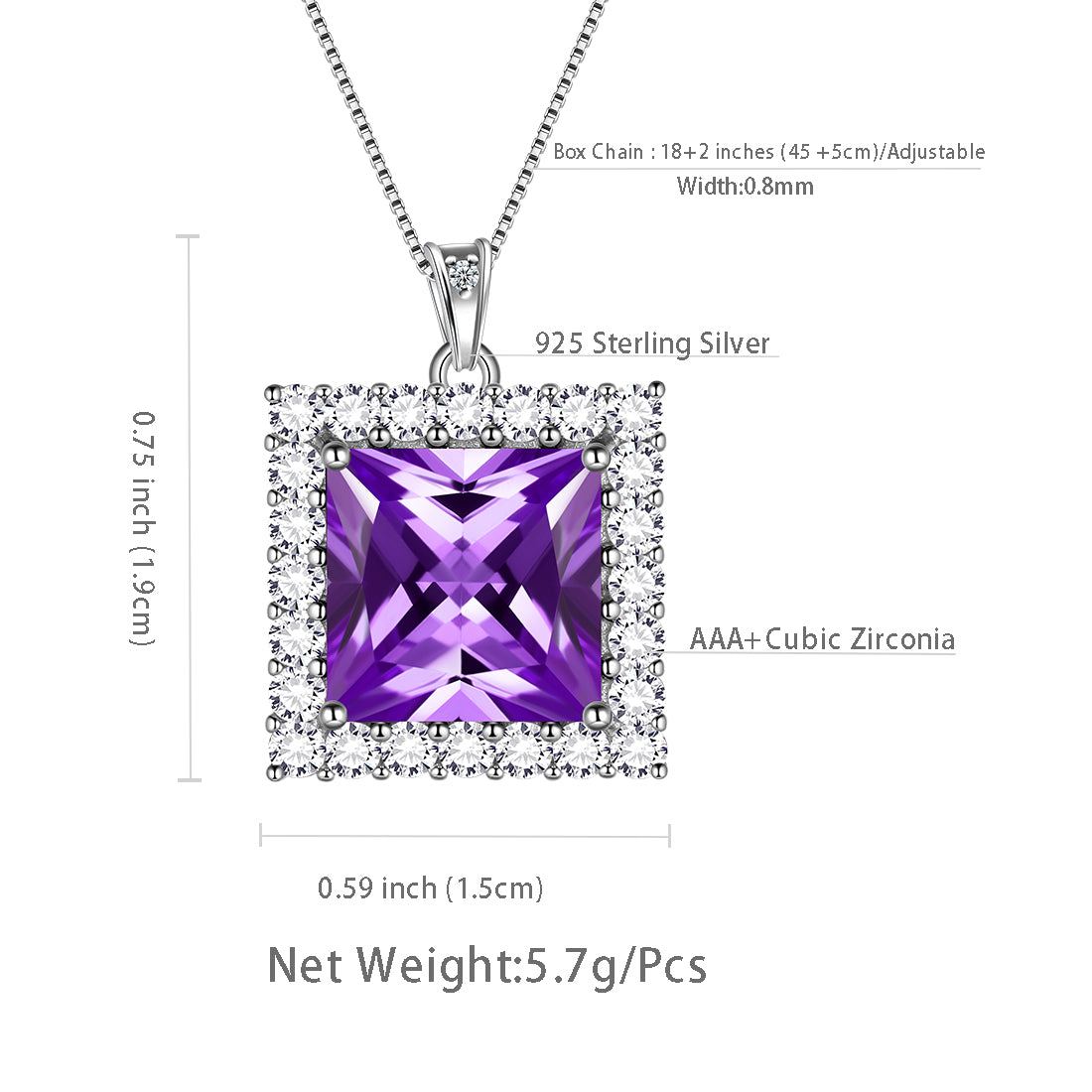 Square Birthstone February Amethyst Necklace Pendant Women Girls Jewelry Birthday Gifts Sterling Silver - Aurora Tears Jewelry