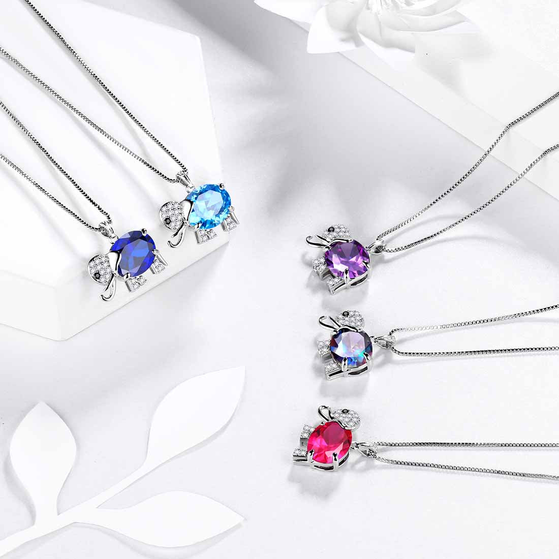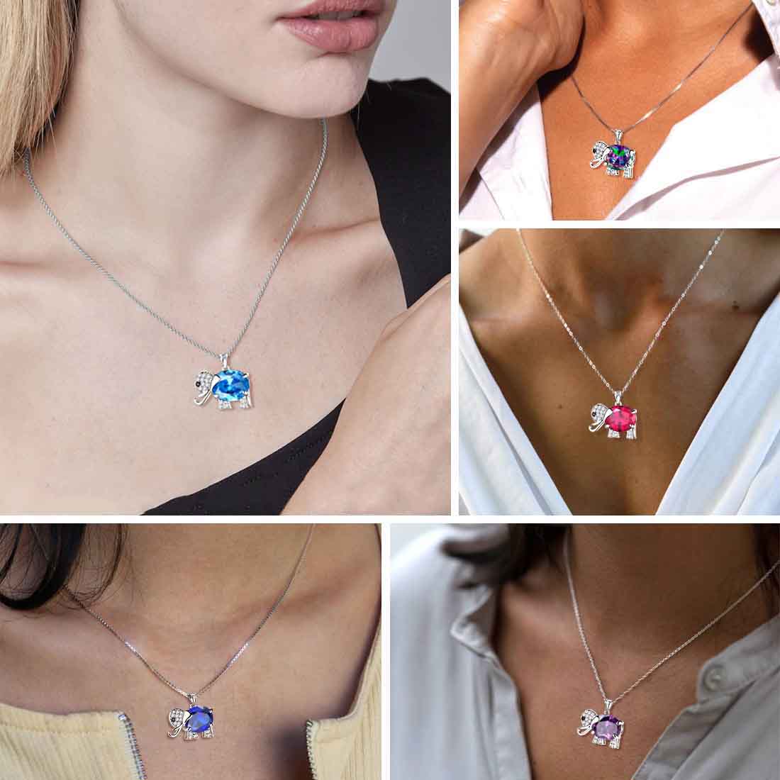 Aurora Tears Elefanten-Geburtsstein-Halskette für Frauen und Mädchen