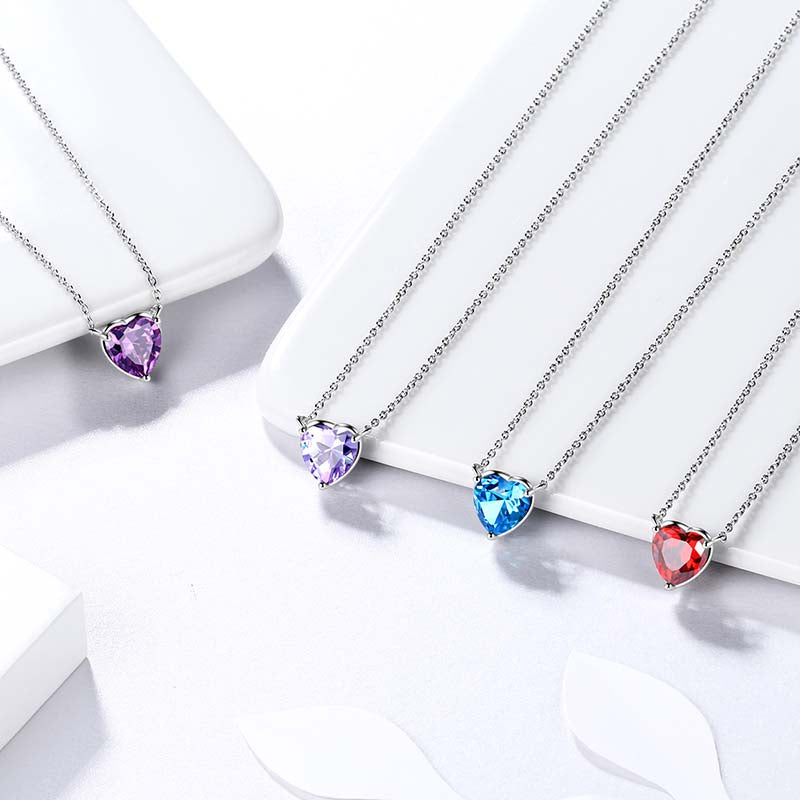 Birthstone Pendant Hearts Necklaces Sterling Silver - Necklaces - Aurora Tears Jewelry