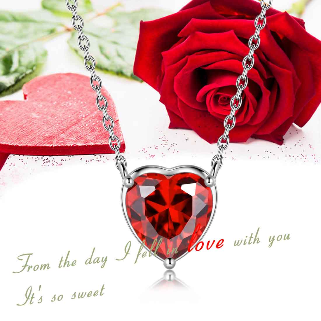 Birthstone Pendant Hearts Necklaces Sterling Silver January-Garnet Aurora Tears Jewelry