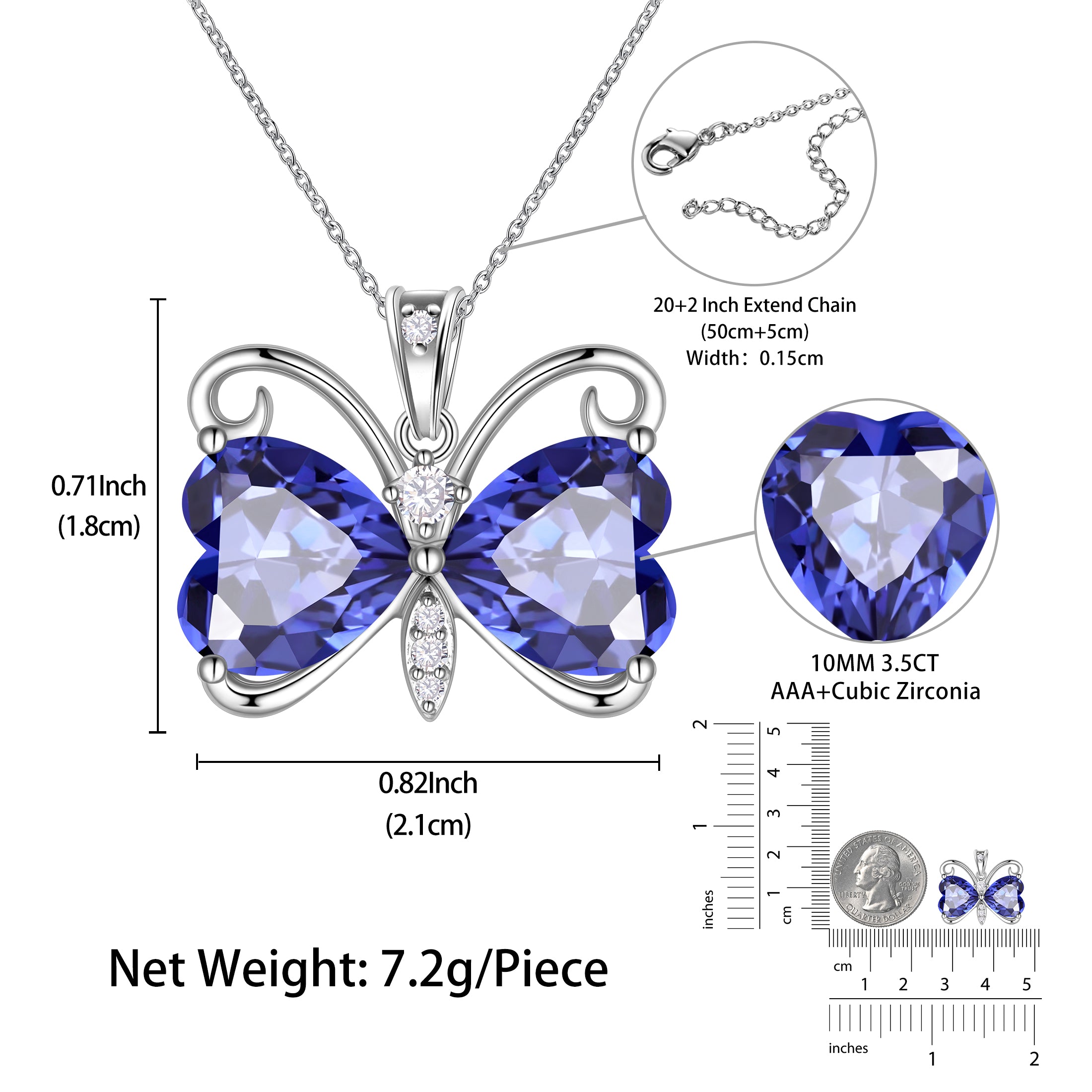 Birthstone Necklace Butterfly Heart Pendant for Women