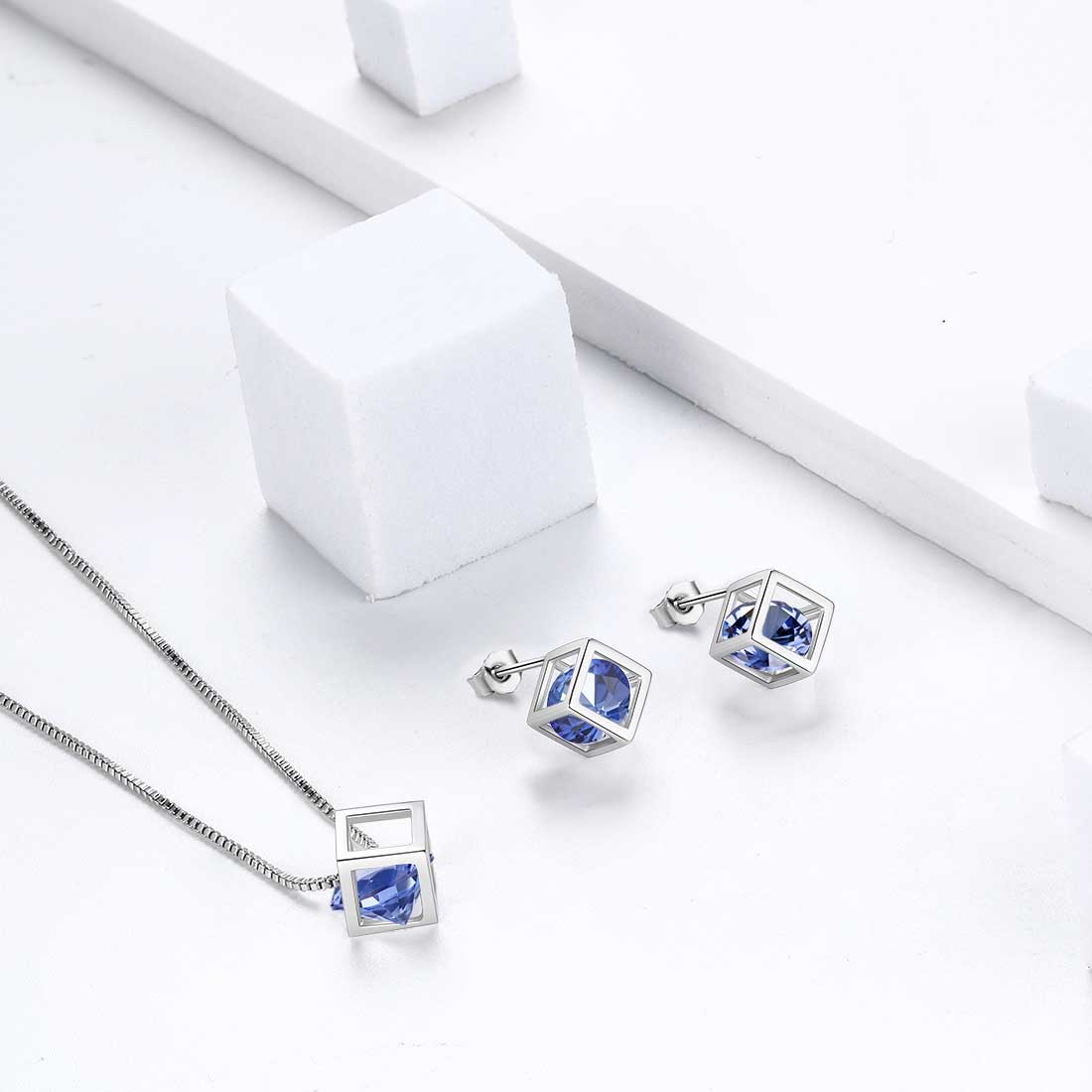 Aurora Tears 3D Cube December Birthstone Jewelry Set for Women Girls