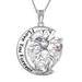 This female white heart necklace is designed with a 15MM heart-shaped gemstone, a mother and daughter embracing, and a crescent moon engraved with "I Love You Forever", perfectly interpreting the deep meaning of "I love you to the moon and back" between mother and daughter.