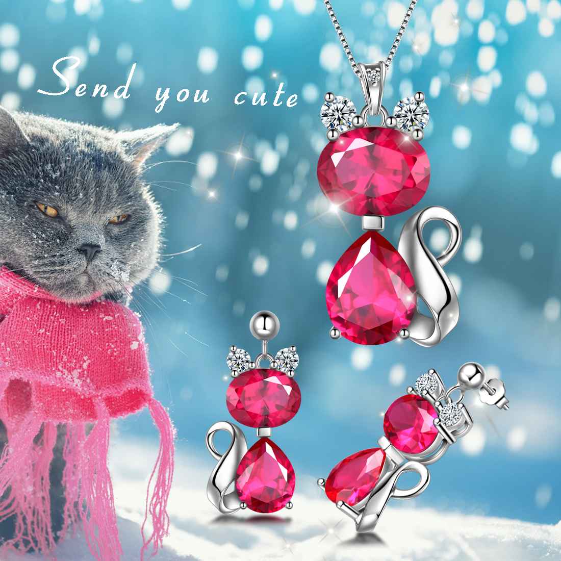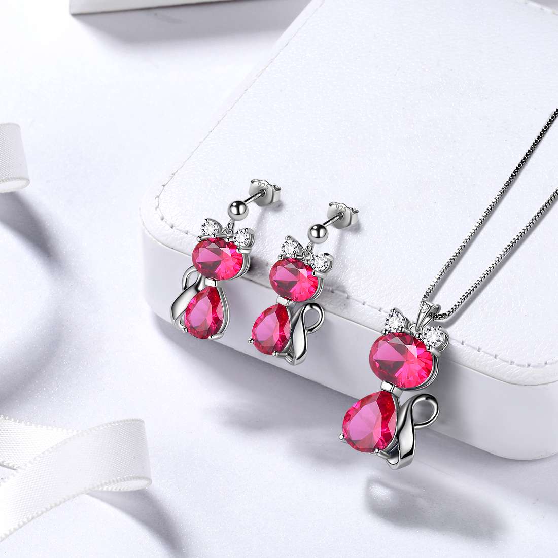Aurora Tears Cat July Birthstone Jewelry Set for Women Girls