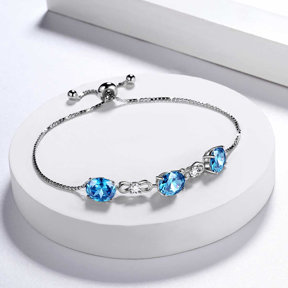Round Birthstone March Aquamarine Bracelet Women Girls Jewelry Birthday Gift Sterling Silver