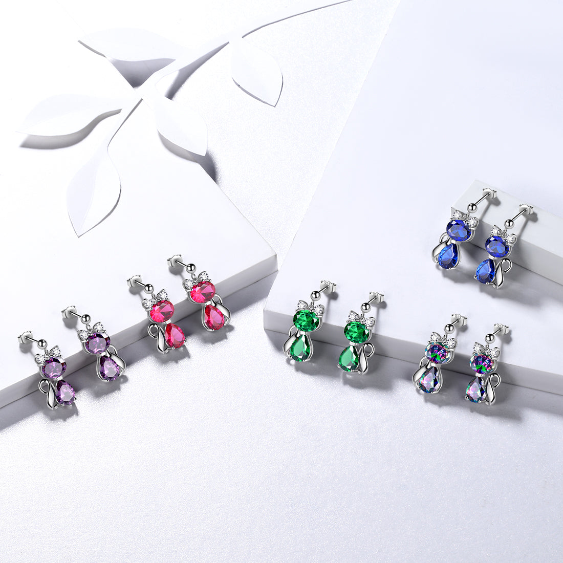 Aurora Tears Pendientes de piedra de nacimiento de Cat February para mujeres ni?as