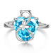 Women Heart Ring 925 Sterling Silver Butterfly March Birthstone Aquamarine Blue Solitaire Ring Jewelry Birthday Gift for Cat Lover Mother - Aurora Tears