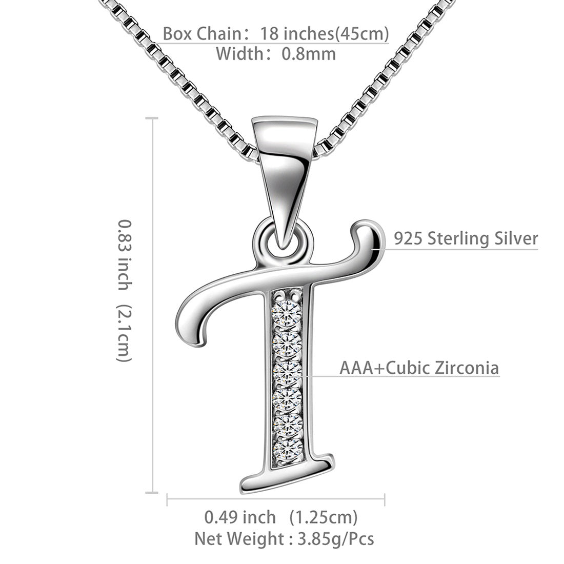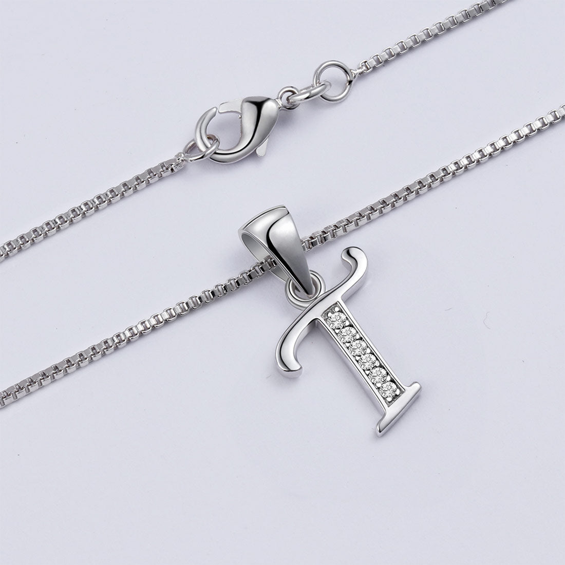 Collar con colgante con letra T inicial de plata de ley 925