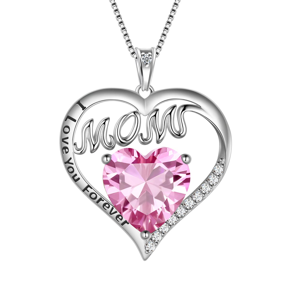 Este collar de corazón contiene la palabra "MAMÁ" y está grabado con "Te amo para siempre". El contorno en forma de corazón y la piedra preciosa en forma de corazón expresan tu doble y eterno amor por tu madre. El collar con piedras de nacimiento es el mejor regalo del Día de la Madre o de cumpleaños para las mamás a las que les gustan las piedras preciosas.