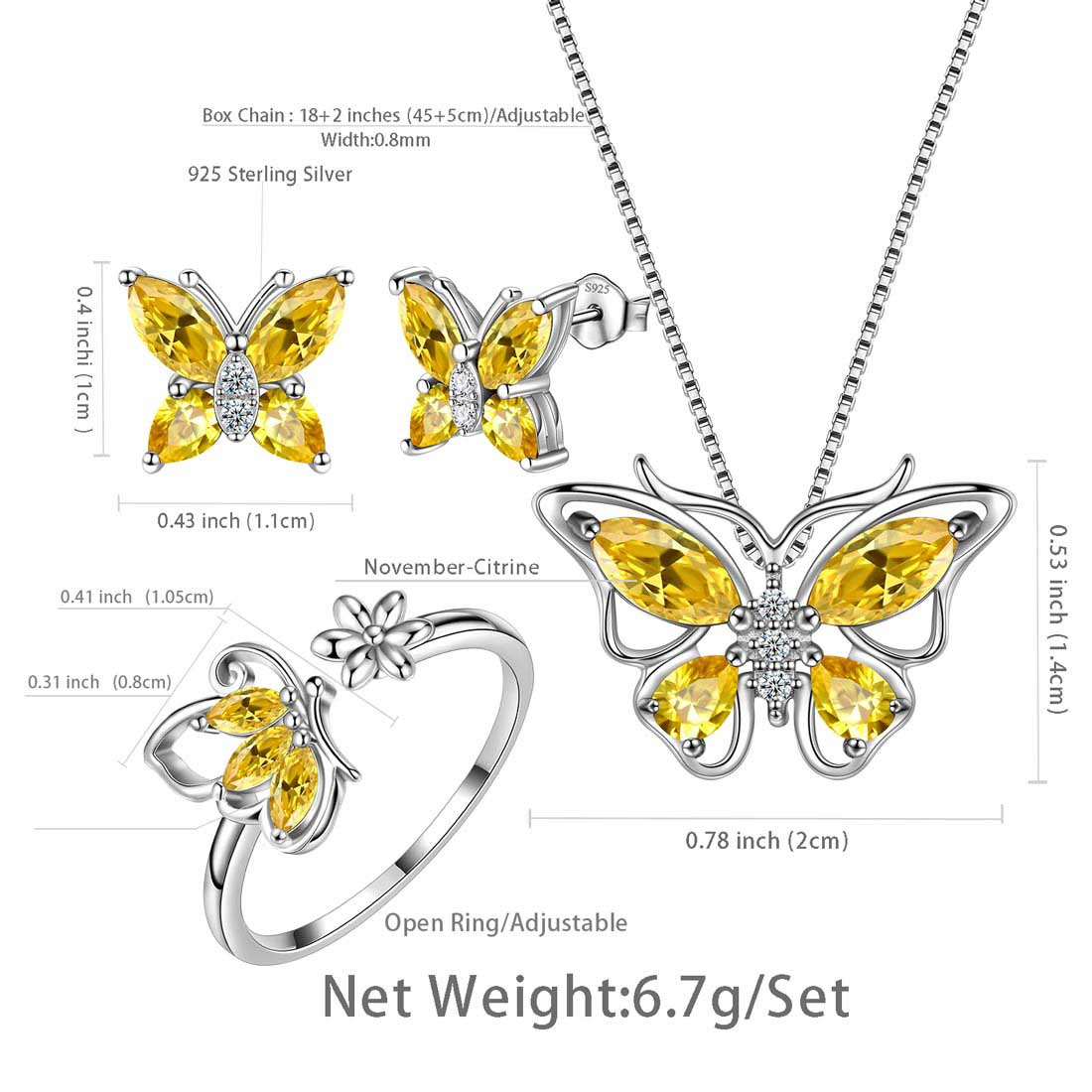 Butterfly Birthstone November Citrine Jewelry Set 4PCS - Jewelry Set - Aurora Tears