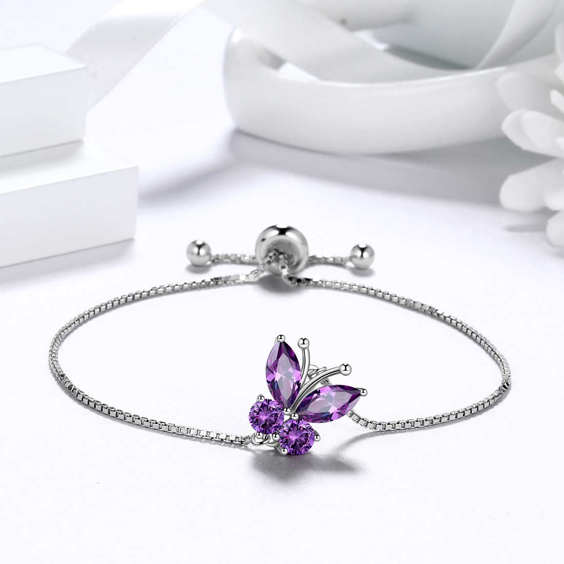 Bracelet Aurore Larmes Papillon Février Pierre de Naissance Femme Fille