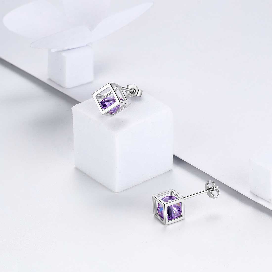 Orecchini Aurora Tears 3D Cube febbraio Birthstone per donne ragazze