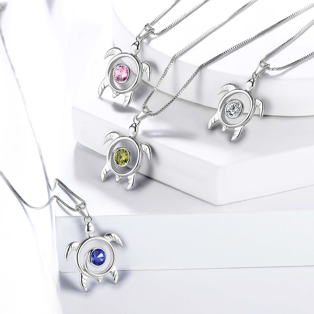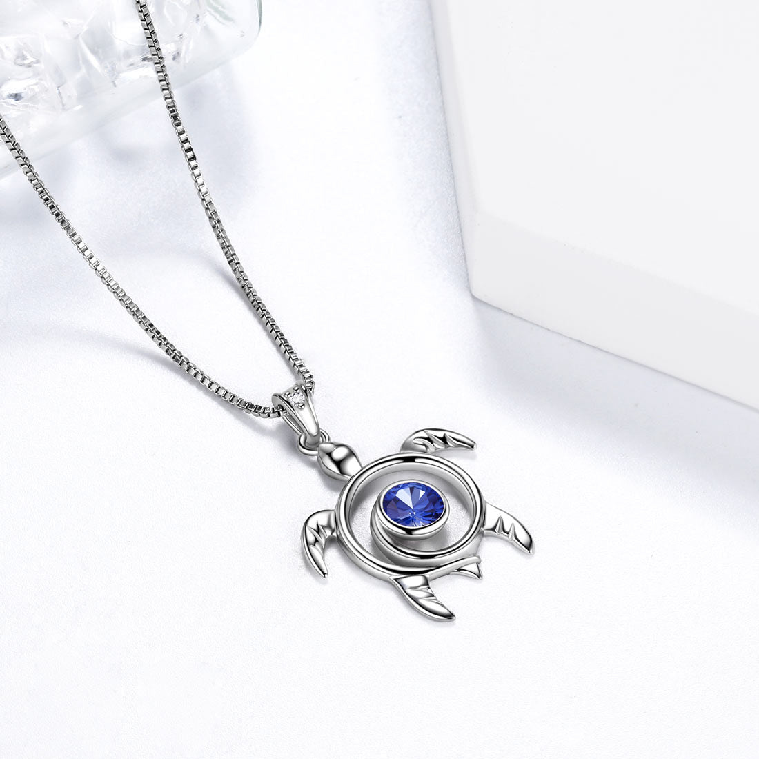 Turtle Birthstone September Sapphire Necklace Pendant - Necklaces - Aurora Tears