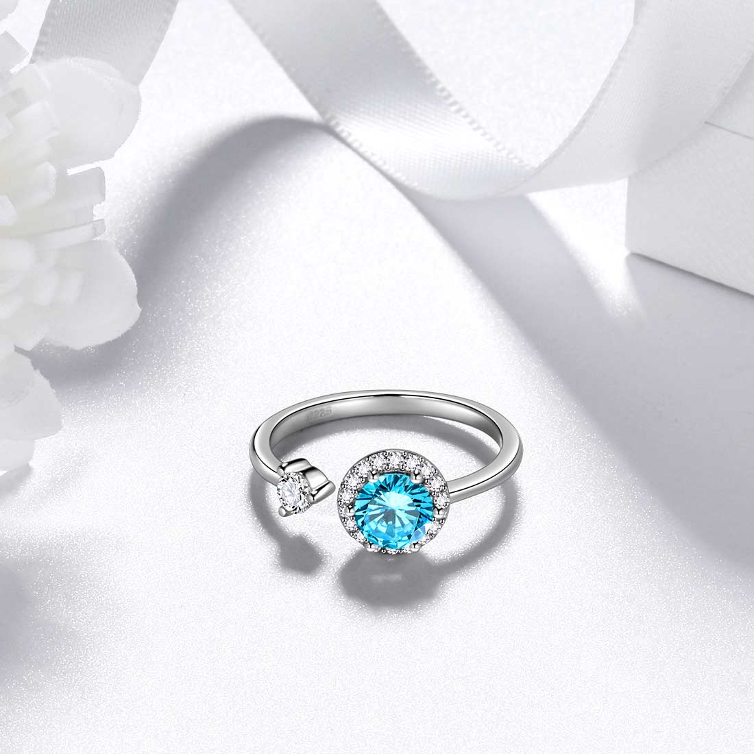 Aurora Tears Round March Birthstone Anelli per donne e ragazze