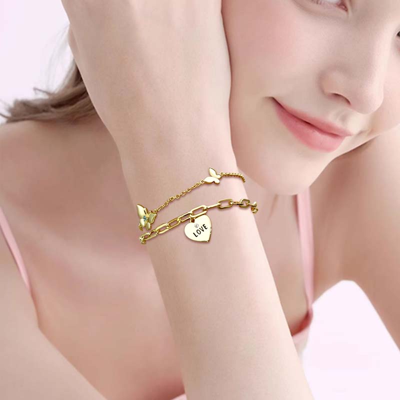 Braccialetti delicati I braccialetti delicati/bracciali a forma di cuore/farfalla sono tutti confezionati in eleganti scatole regalo per gioielli, che sono tutti con chiusura separata . Per questo motivo, puoi abbinare altri accessori a tuo piacimento.