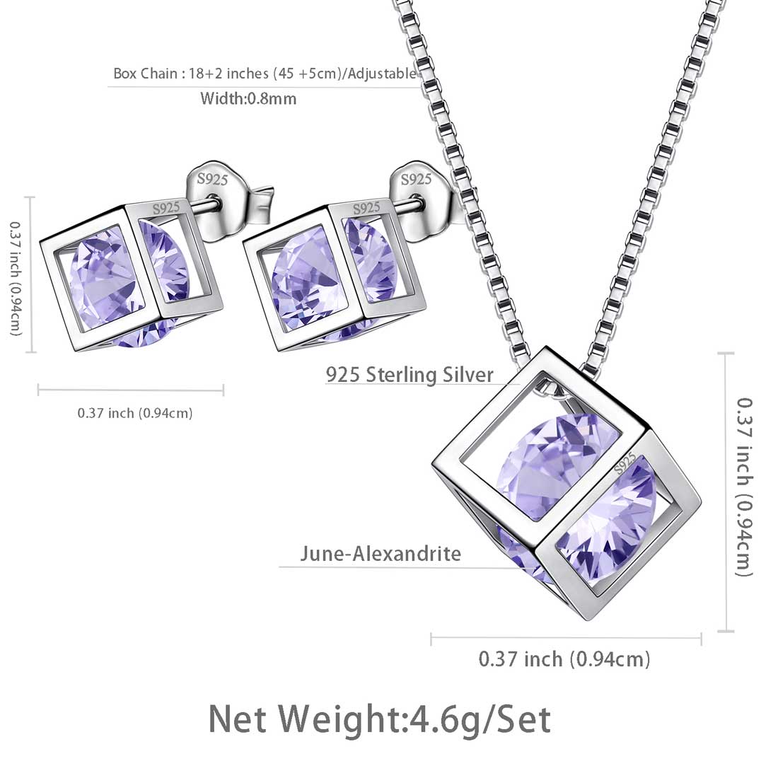 Aurora Tears 3D Cube June Birthstone Set di gioielli per donne e ragazze