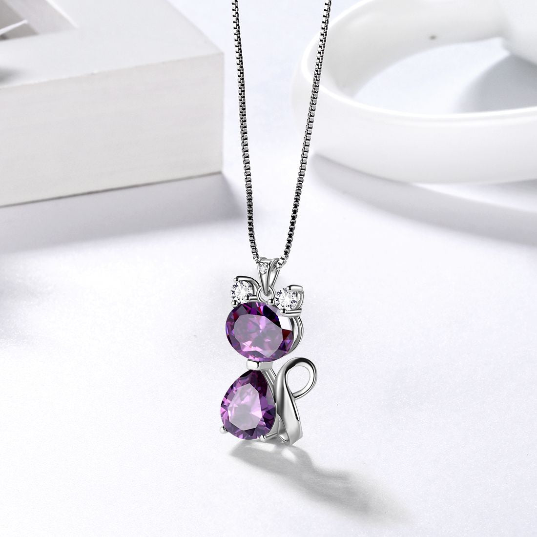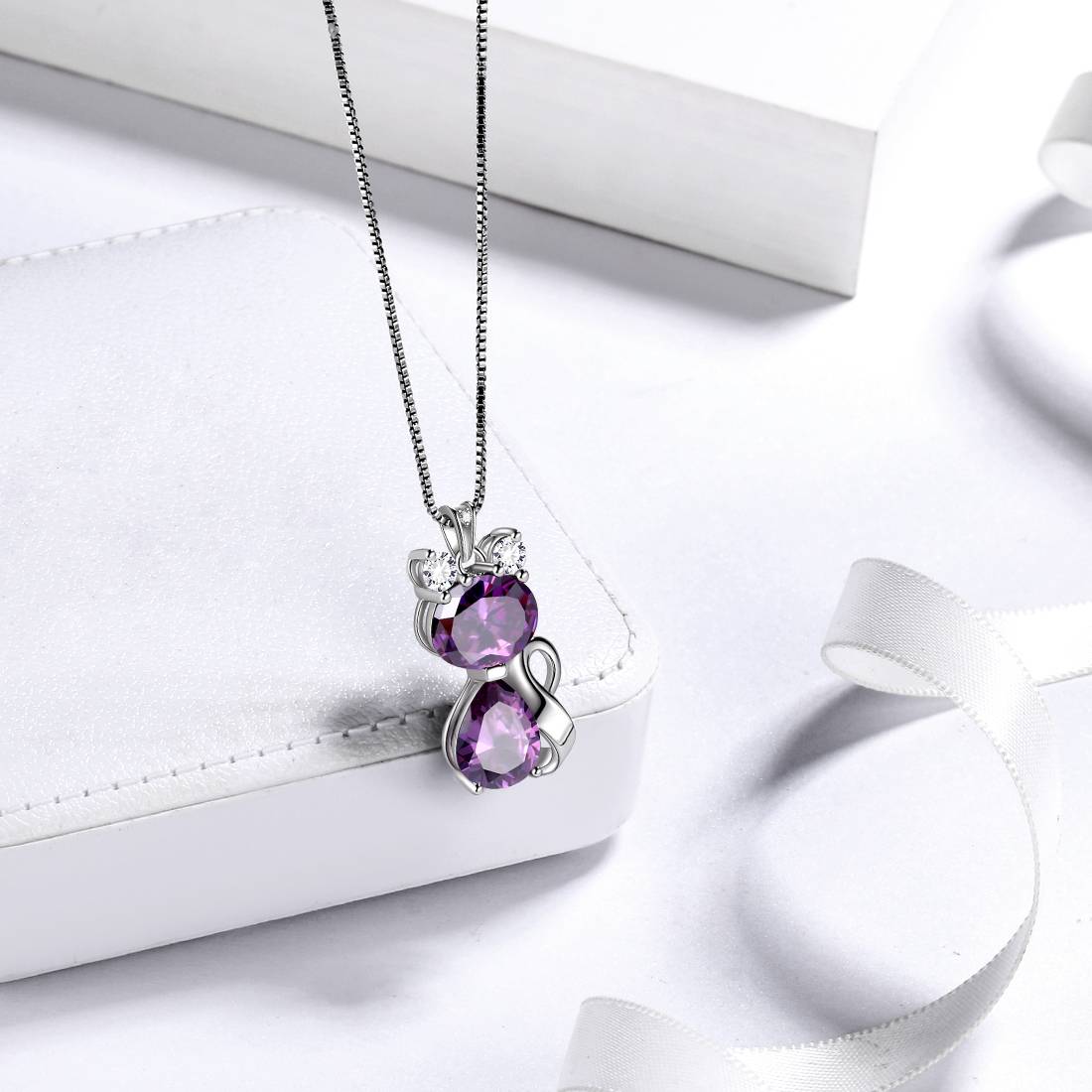 Aurora Tears Collana con pietra portafortuna di febbraio gatto per donne e ragazze