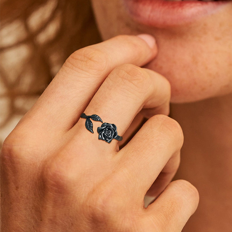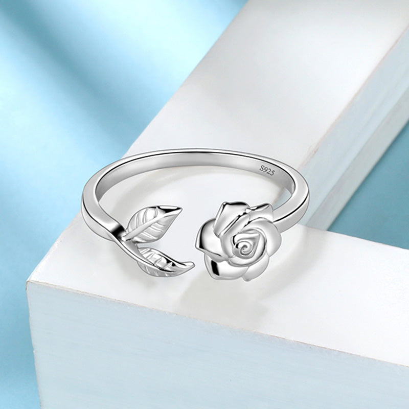 Flower Rose Ring Floral Leaf Wrap Band 925 Sterling Silver - Rings - Aurora Tears