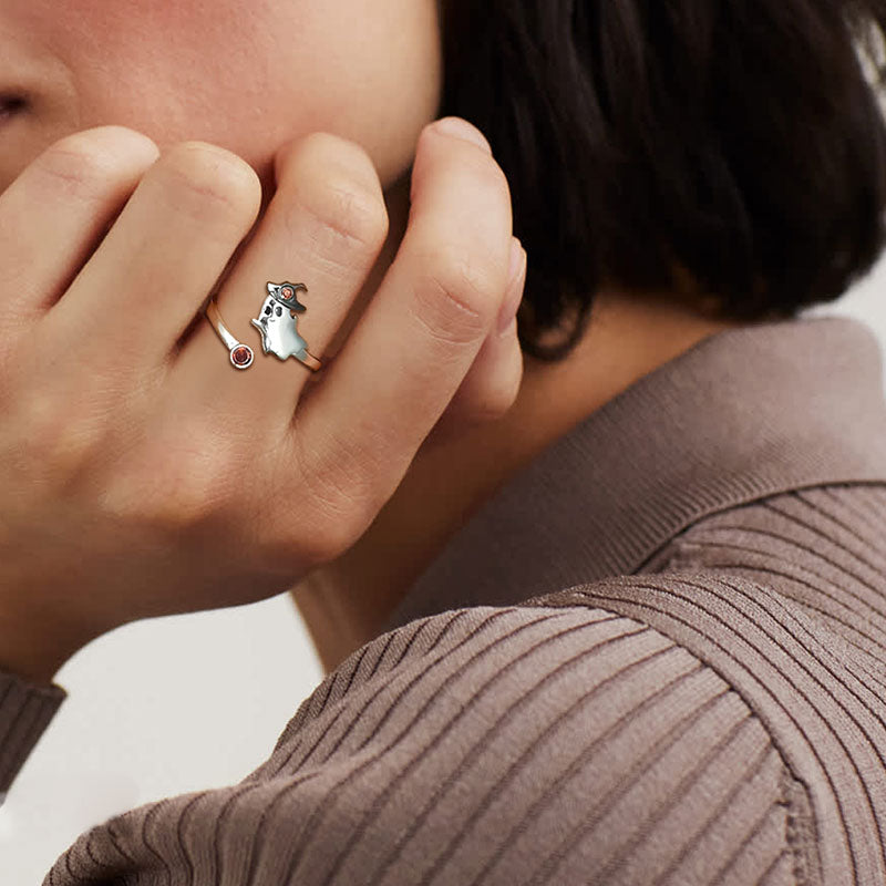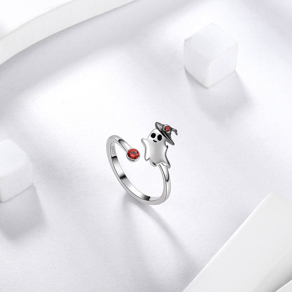 ??Ispirato dal fantasma, l'anello aperto del fantasma è pieno di divertimento di Halloween, facile da abbinare al tuo costume bianco a tema fantasma, feste di Halloween, cosplay, giochi di ruolo ecc. Di' "Buon Halloween" a quello che ami.