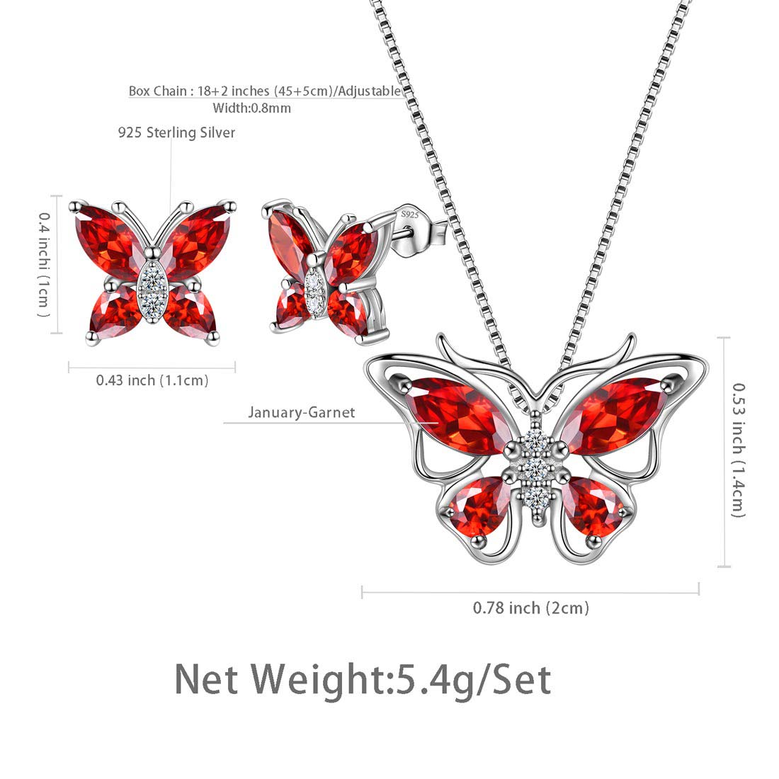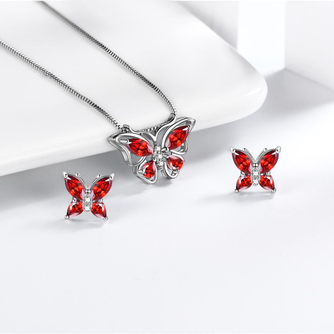Set di gioielli Aurora Tears Butterfly January Birthstone - Collana + orecchini