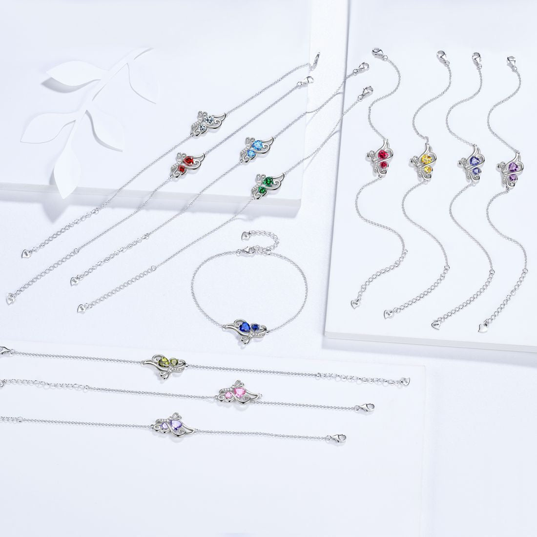 The unique design of this butterfly birthstone bracelet jewelry matches Valentine's Day, Mothers Day, Anniversary Day, Christmas / Xmas, Thanksgiving Day, New Year, Birthday and Wedding or just daily life. And the trendy butterfly bracelet is an ideal gift for your Wife, Mom, Daughter, Grandma, Girlfriend, Friends, your special someone, or just a gift for yourself.