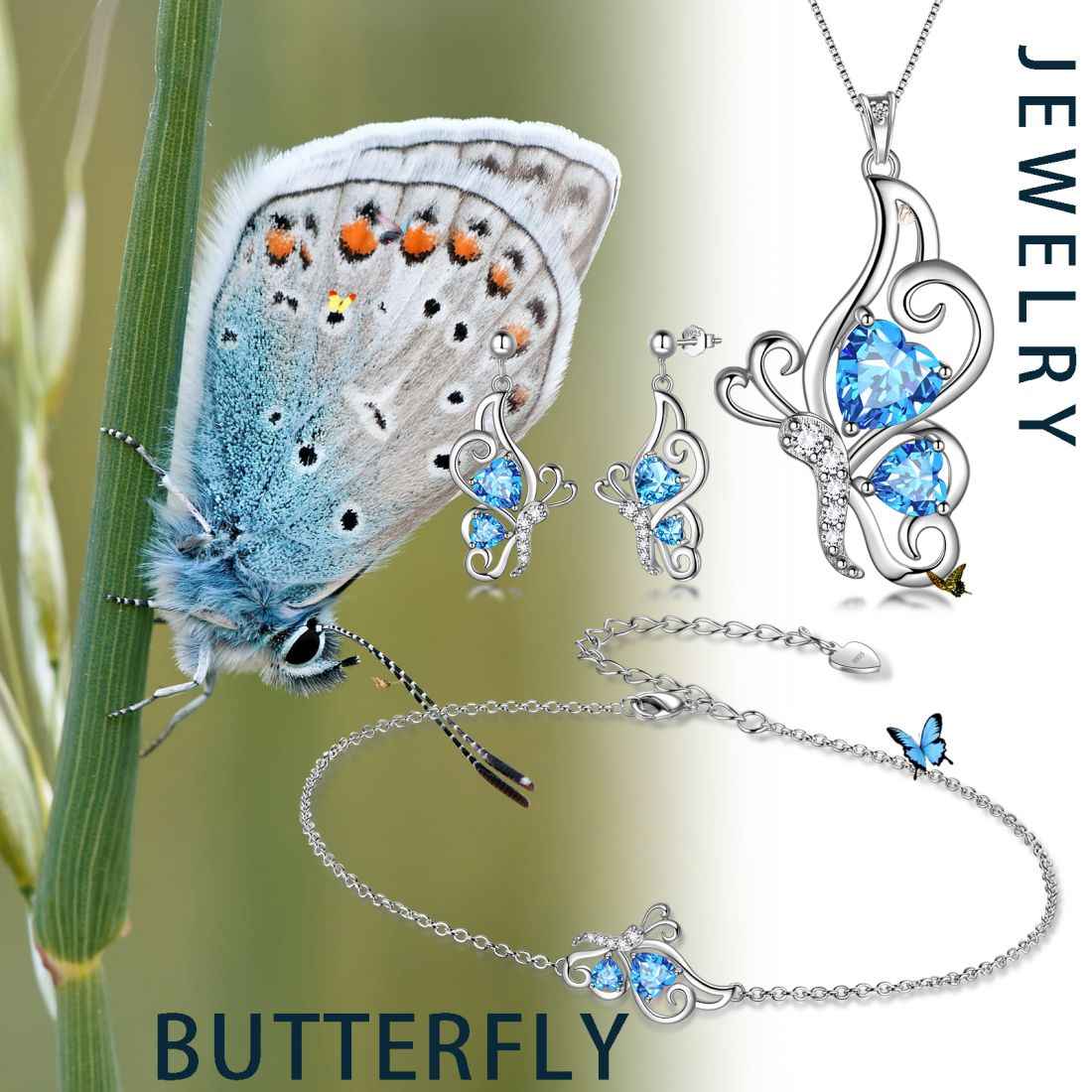 Aurora Tears Butterfly March Birthstone Jewelry Set for Women Girls