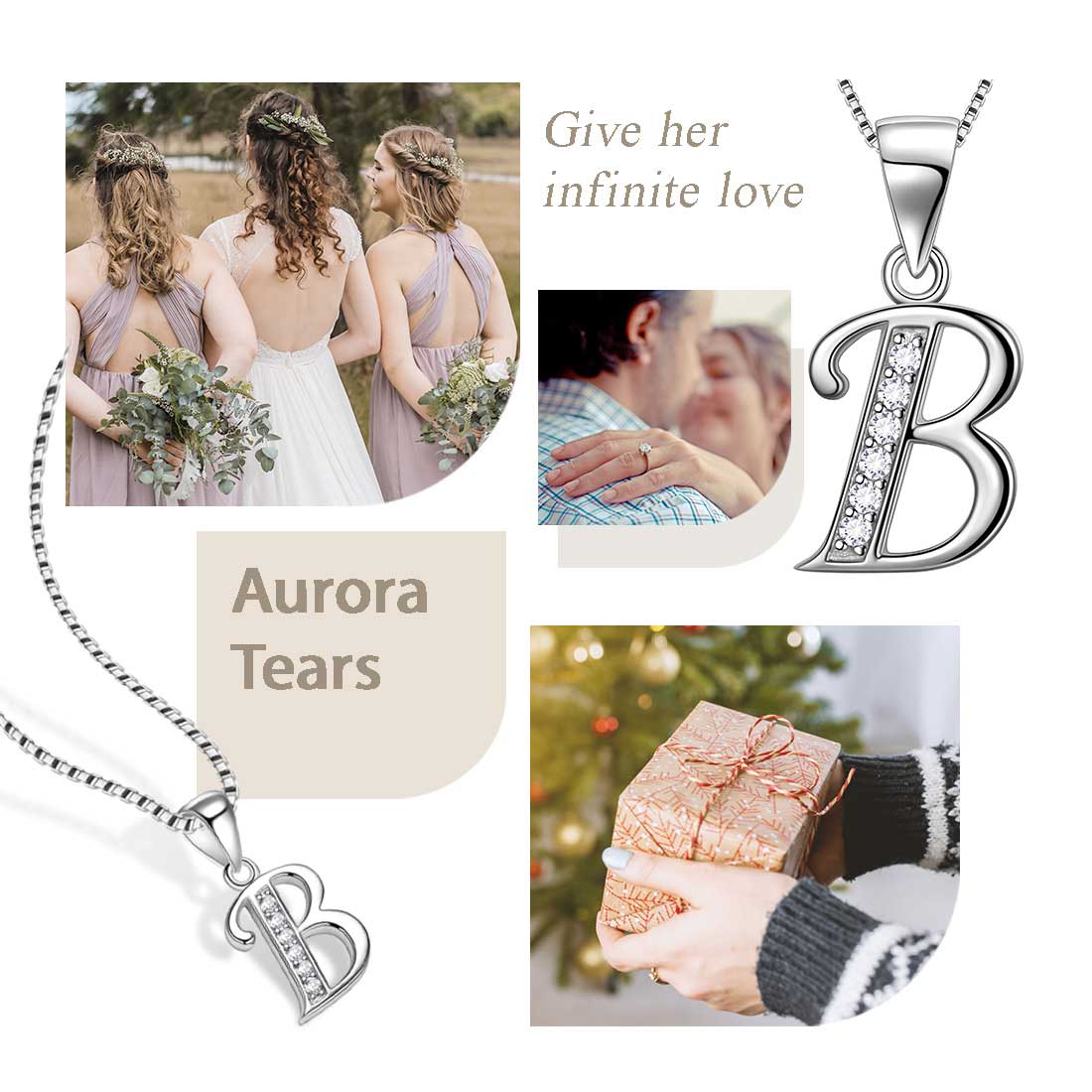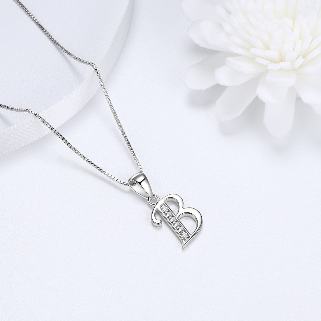 Letter B Initial Necklaces 925 Sterling Silver - Necklaces - Aurora Tears Jewelry