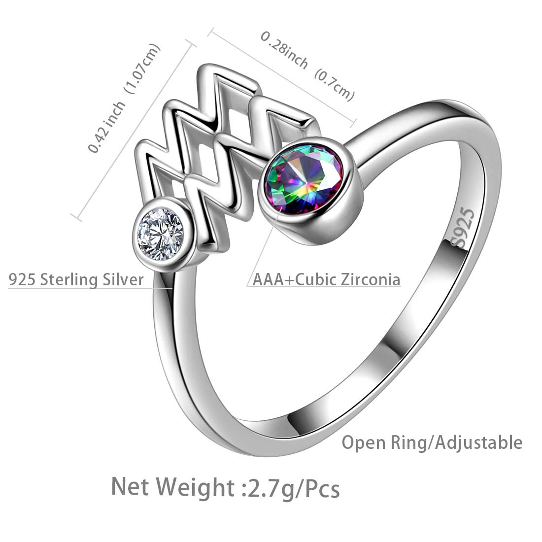 Aquarius Zodiac Open Rings 925 Sterling Silver Aurora Tears Jewelry