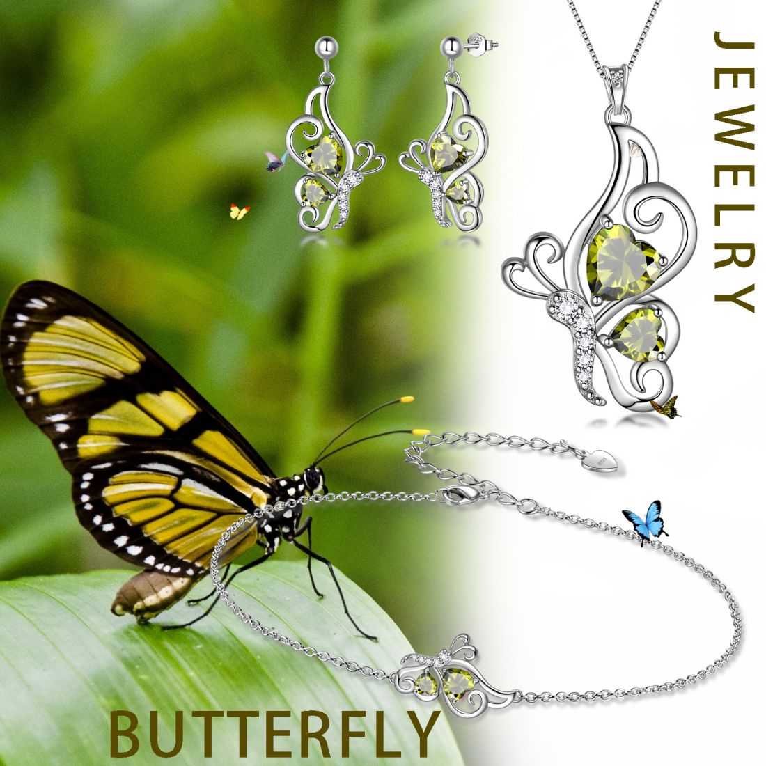 Aurora Tears Conjunto de joias com pedra de nascimento de agosto em forma de borboleta para mulheres e meninas