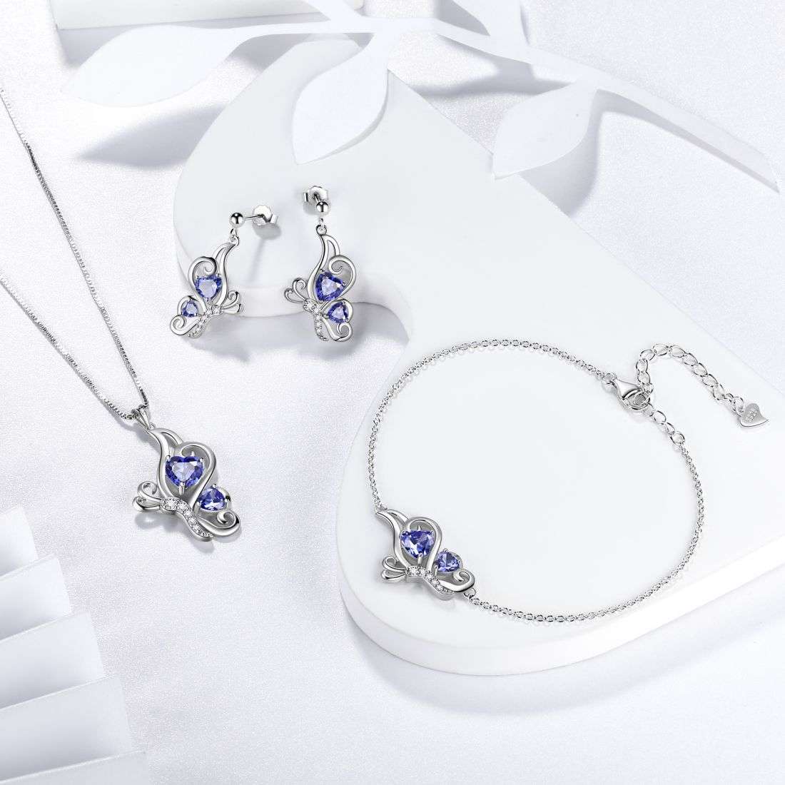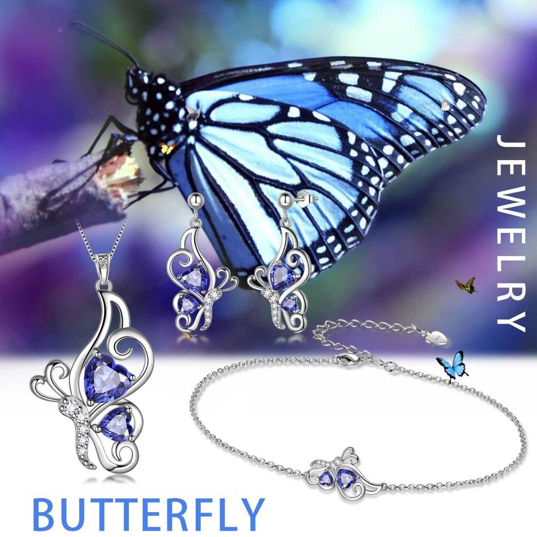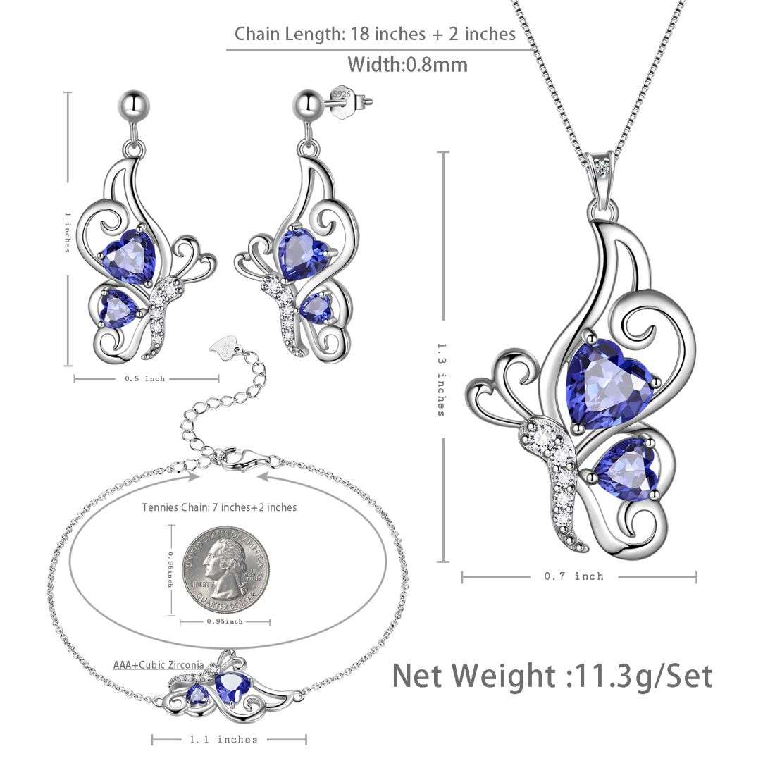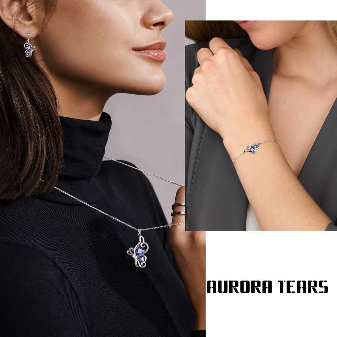Aurora Tears Conjunto de joias com pedras de nascimento de dezembro em forma de borboleta para mulheres e meninas