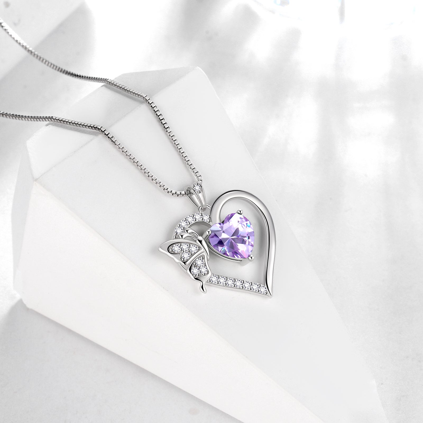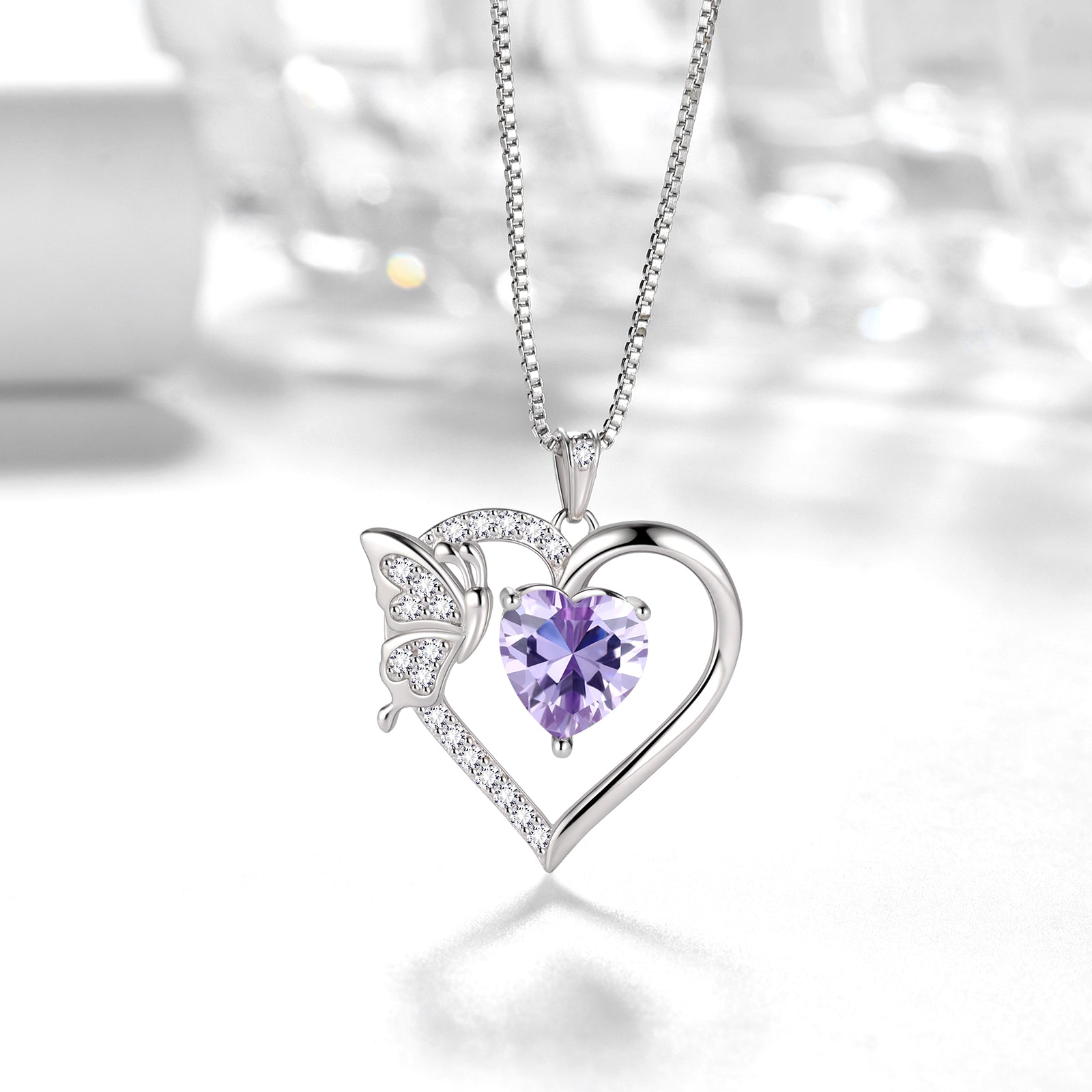 Colar com pingente de coração em alexandrita, pedra do mês de junho, para mulheres e meninas.
